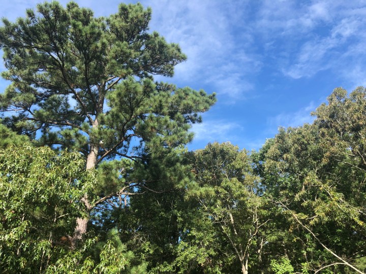 I’m waiting to go now on my fourth floor balcony – I’m in the canopy, watching the gentle sway of pine and oak, a few clouds brushed thin over the blue sky.